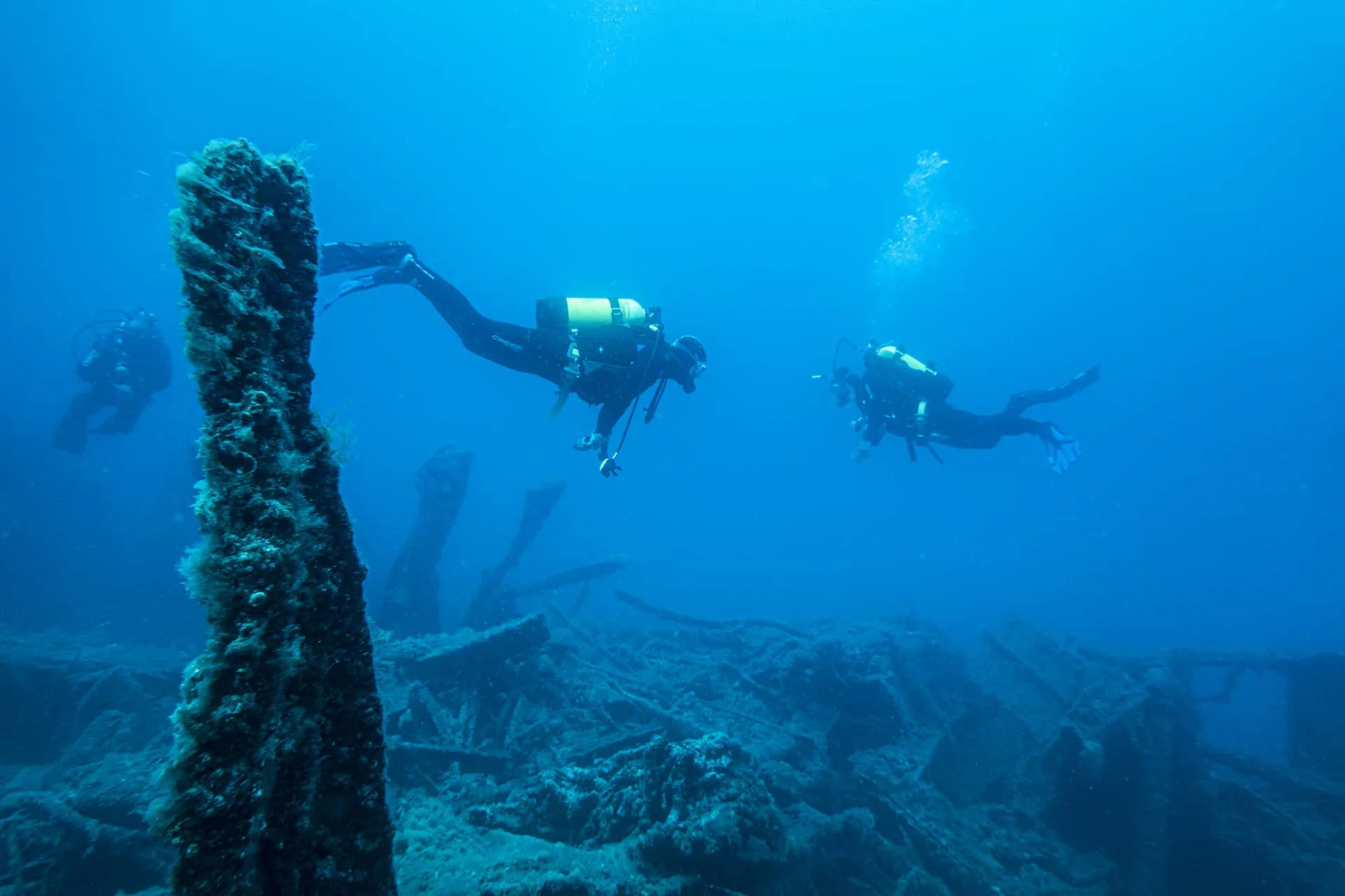 The equipment to be used for diving includes the basic gear used in equipped dives, such as mask, fins, weights, buoyancy vest, diving tank, wetsuit (3-5 mm depending on the season), regulator, gloves, and a 7 mm neoprene suit during the November-March seasons, as well as semi-dry or dry suits, and diving can also be conducted with this equipment in the historical underwater park of Gallipoli.